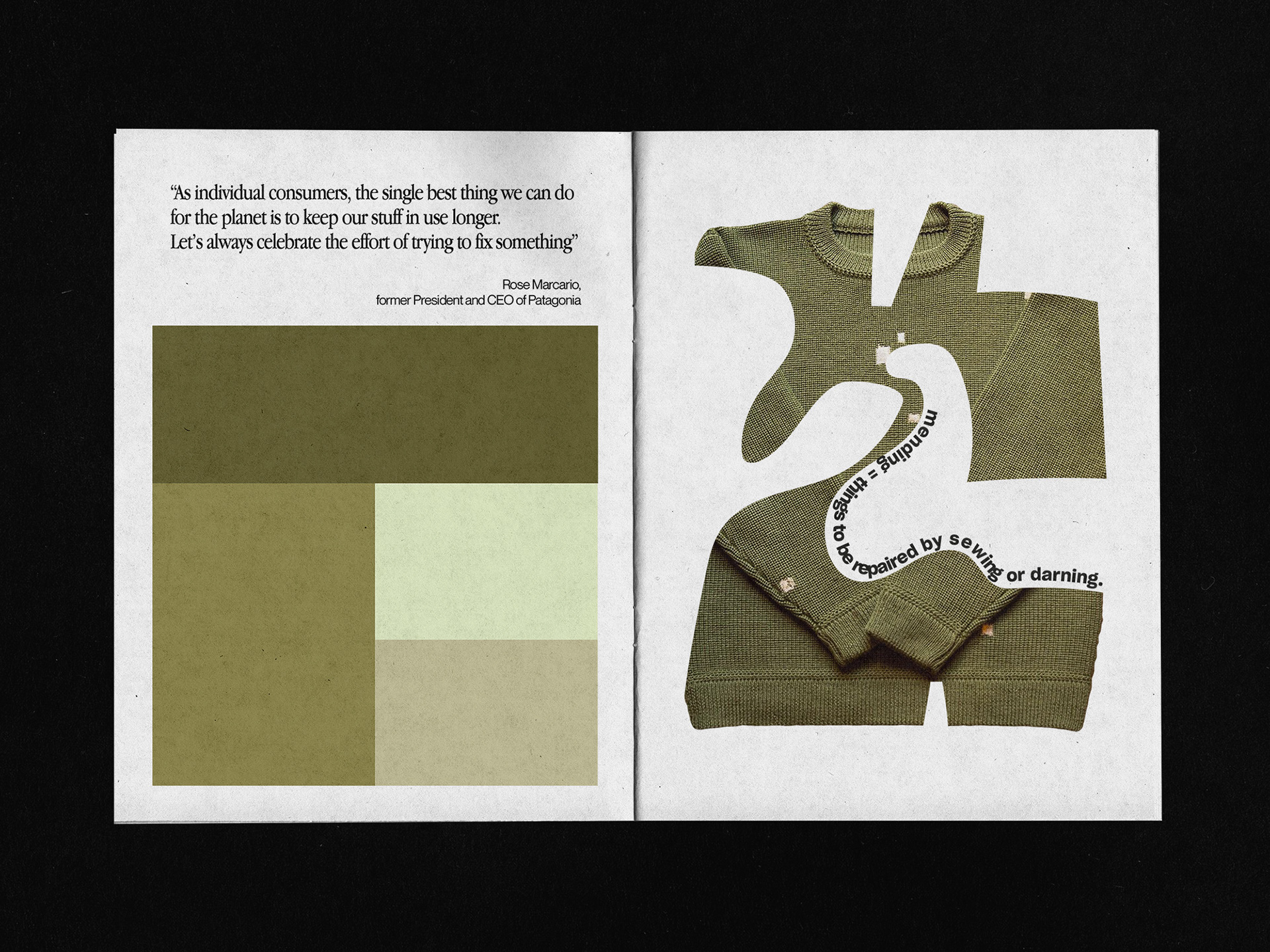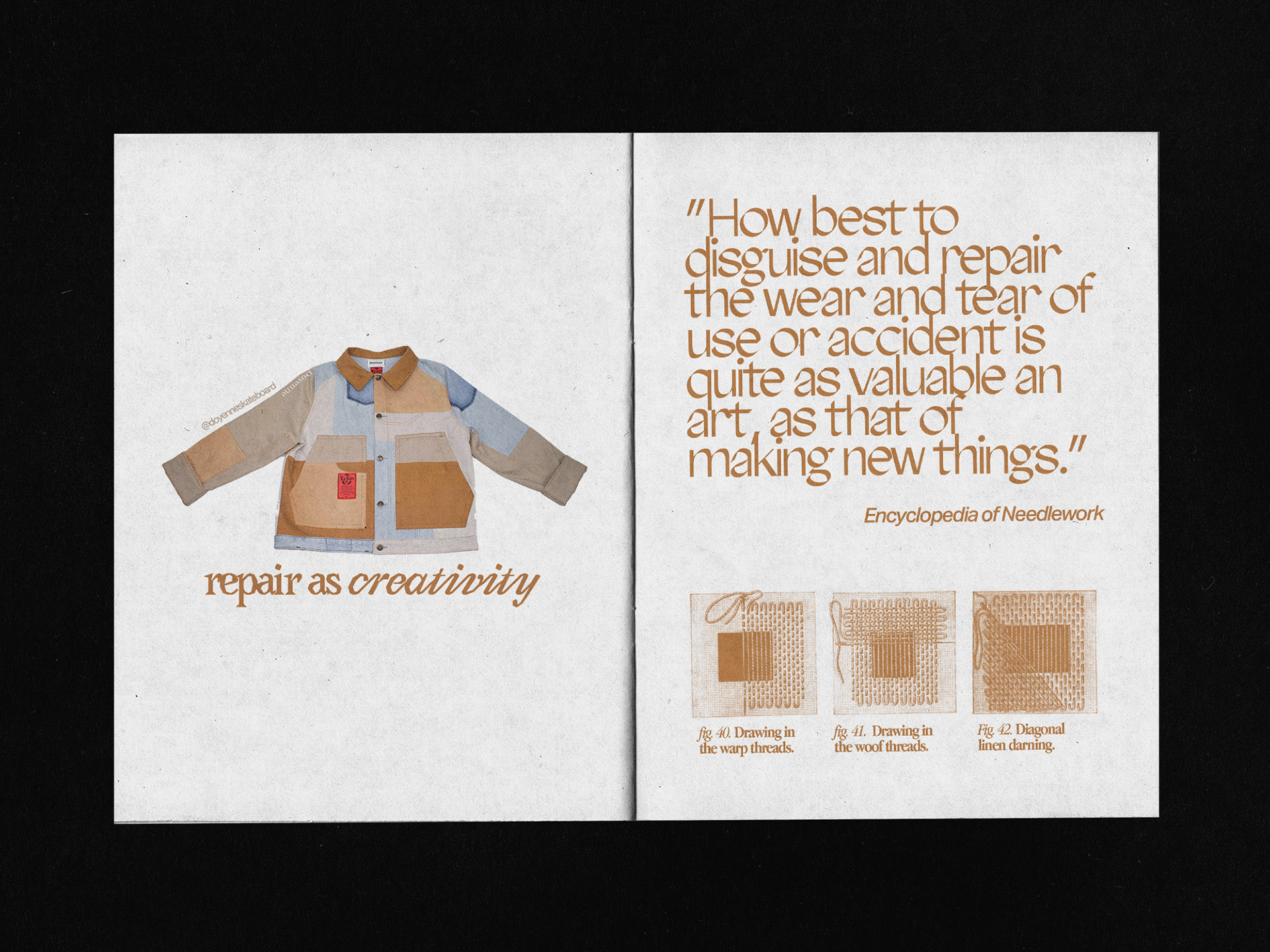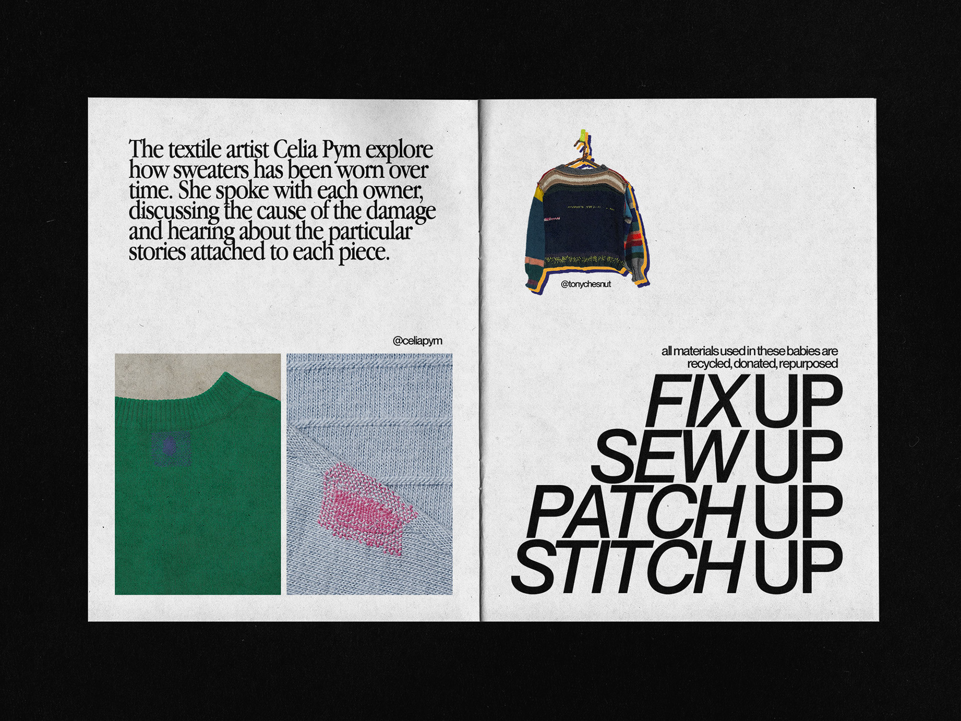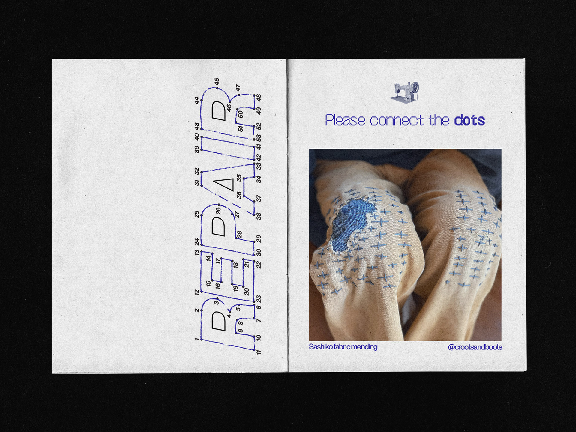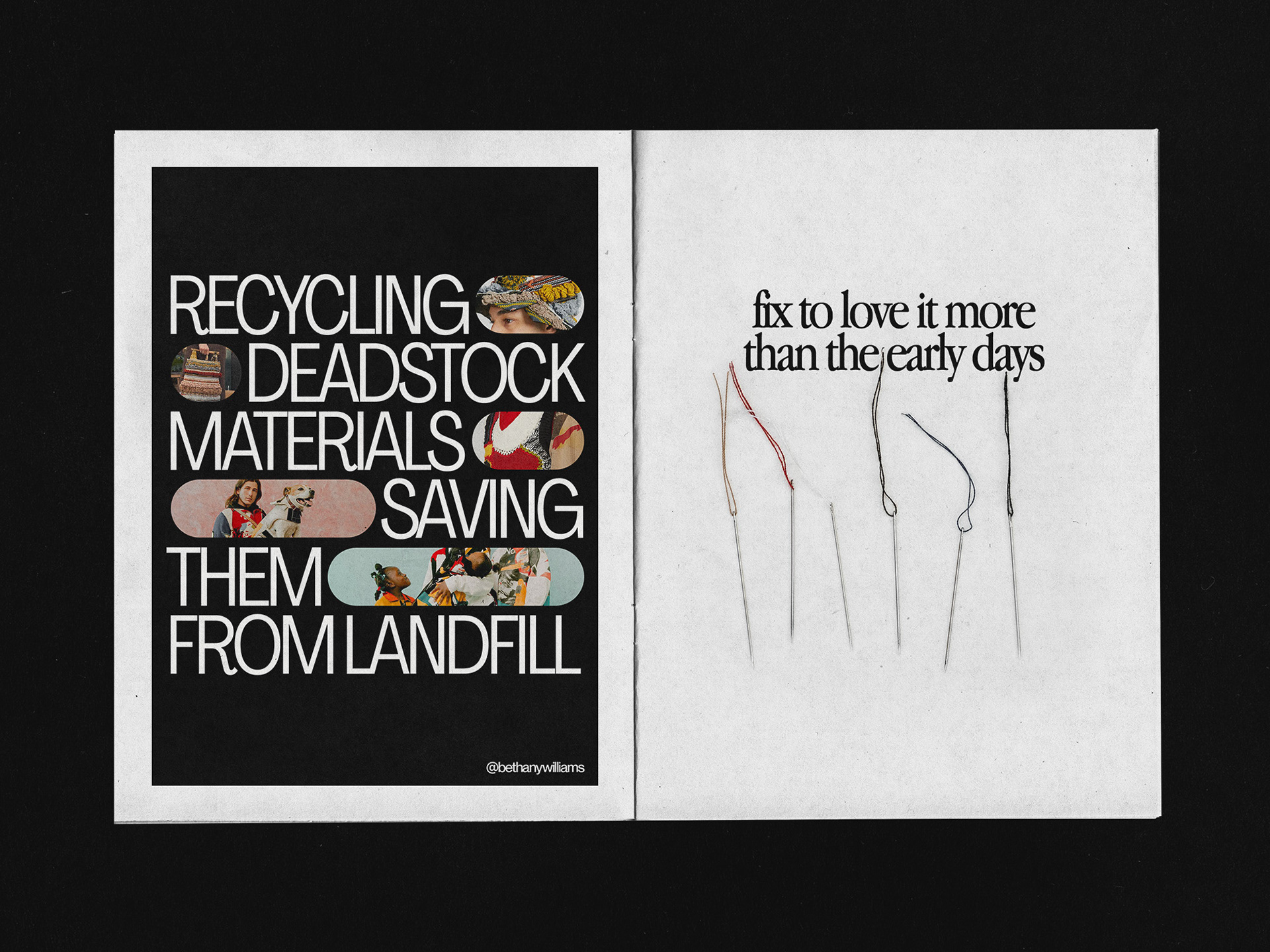 The aim of this print project is to promote mending. With graphic design and typography, I want to show how creative it can be to stitch up your clothes and highlight brands that do it.